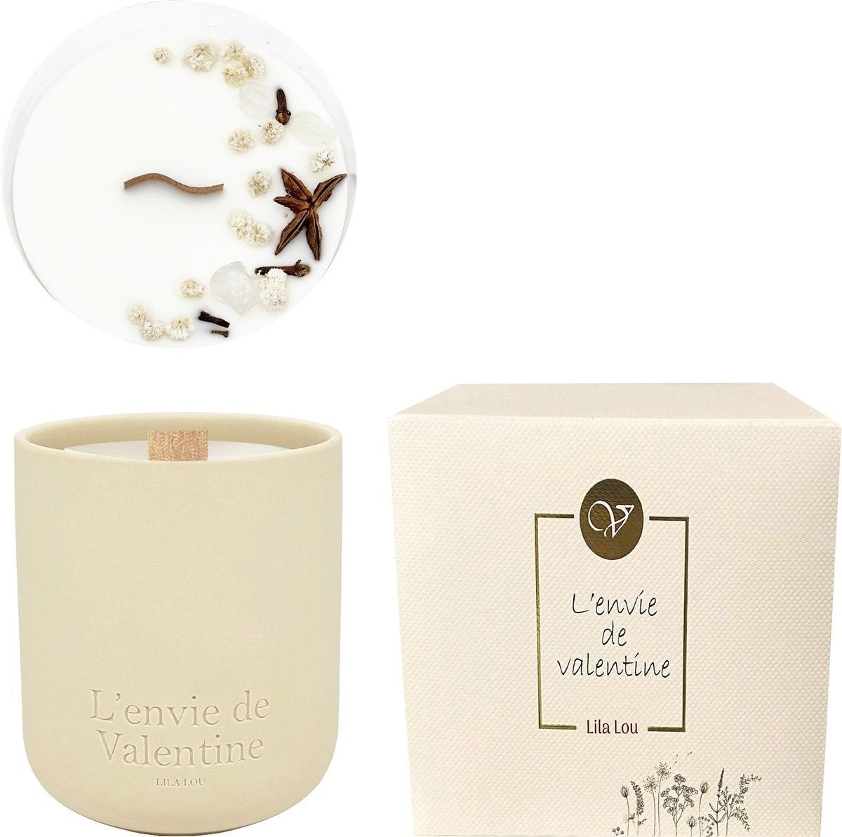 De geurkaars van L’Envie de Valentine omhult je ruimte met een harmonieuze mix van frisse pioenroos, witte musk en een vleugje lavendel.